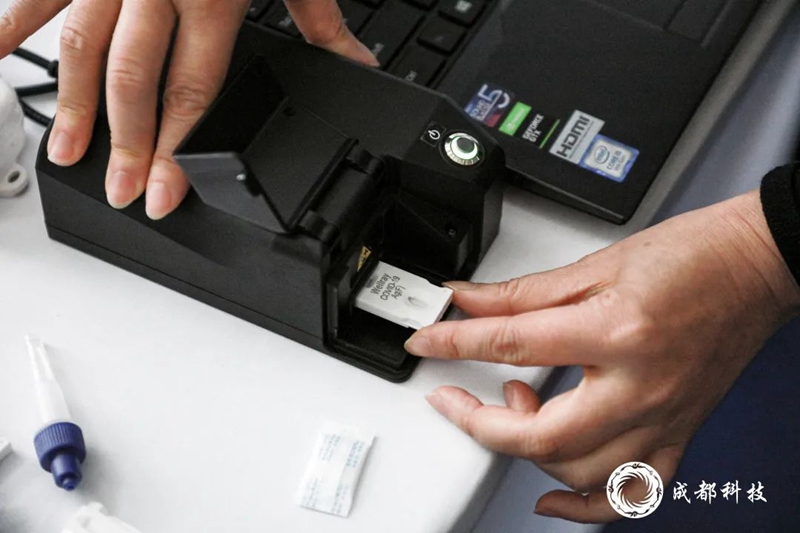 “新冠病毒抗原检测操作简单、快捷,15分钟出结果。”成都海关技术中心相关负责人介绍,口岸中心申请了成都市重点研发支撑计划“成都口岸新冠疫情常态化防控关键技术研究”项目,并联合中国海关科学技术研究中心等多家单位,致力于将新冠病毒抗原快速检测技术成果运用于大运会疫情防控,以科技助力大运。项目组研发了新冠病毒高敏荧光抗原快速检测试剂盒及配套设备,同时研发了可用于居家自测的胶体金抗原检测试剂盒,已完成临床验证,并向欧盟申请了CE认证。