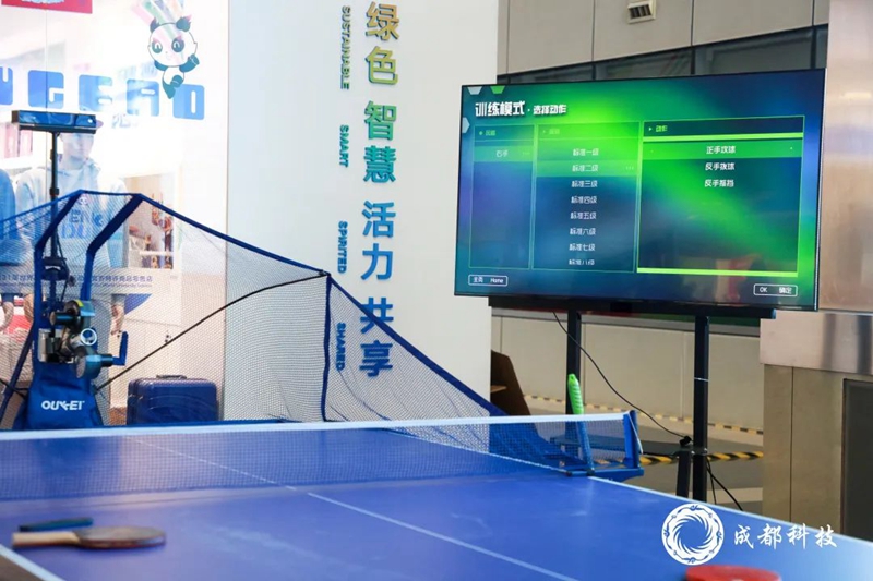 成都艾尔帕思科技有限公司研发的智能乒乓球教练系统。该公司相关负责人介绍,这套系统主要利用正面和侧面两个相机捕捉训练者动作,通过智能算法及数据分析可以实时给出改进建议,实现无感化的机器教学。“目前,这套系统包括评测模式、训练模式、教练模式。比如,在训练模式下,系统会根据训练者的不足提供针对性训练,帮助训练者形成肌肉记忆。”相关负责人说道。
