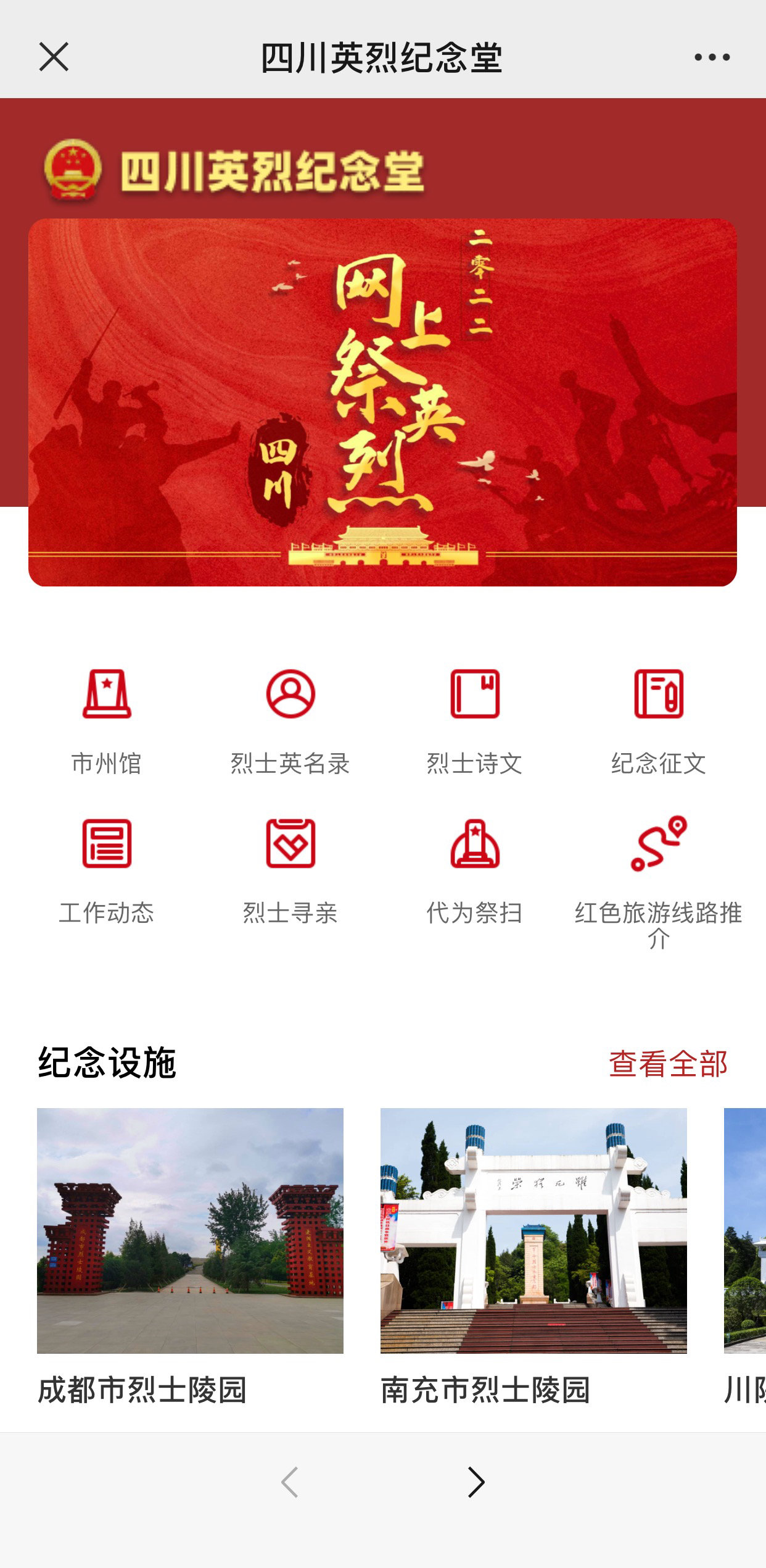 四川英烈纪念堂由退役军人事务厅推出,是集线上祭扫、实景观展、宣传教育等功能于一体的综合性平台。去年,为了便于网友线上祭扫,四川英烈纪念堂改版推出电脑端和手机端。今年3月24日,退役军人事务厅再度升级,推出了TV端线上平台——“四川英烈纪念堂”电视专栏,实现四川英烈堂在电视端的创新延展。