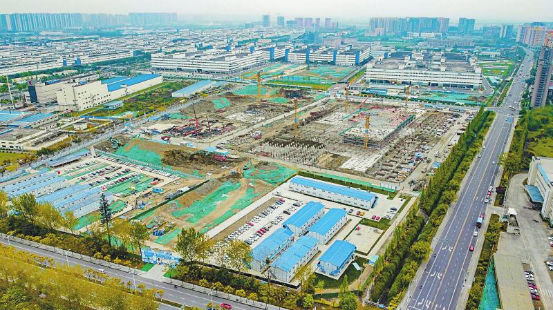 4月7日,建设中的京东方成都车载显示基地项目工地一片繁忙。 记者 华小峰 摄