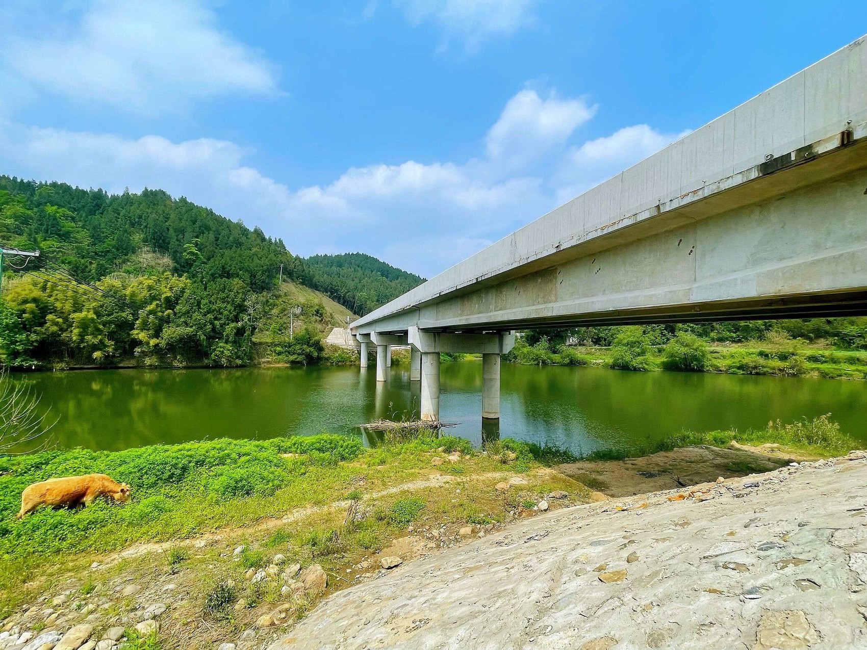 4月7日下午,“行走新巴蜀”四川日报全媒体采访小分队来到绵阳市三台县三元镇龙吟村。经过一座公路桥时,带路的村干部特意停下来,指着河两岸的房屋感慨:“别看两岸房屋差不多,但当年造价却相差不少。”