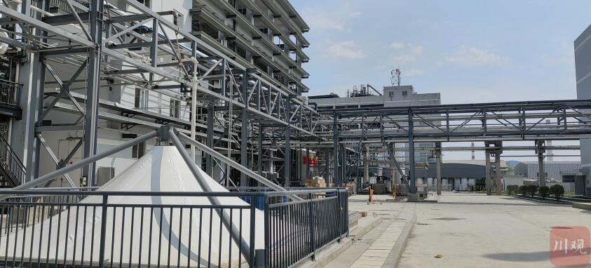 4月8日下午,在绵阳经开区四川东材科技集团股份有限公司的厂区里,“行走新巴蜀”四川日报全媒体采访小分队看到了该公司投资2.3亿元建成、外形仿若钢铁堡垒般的最新生产线:其主体厂房有20多米高,没有外墙或围栏,一根根或粗或细的管道穿插盘绕,银色的管道和罐体在阳光下反射着光芒。