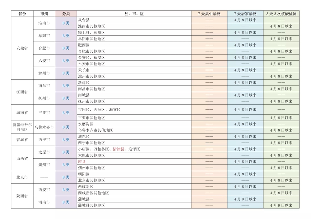 自4月15日起,四川省根据风险大小,将国内有本土疫情发生的地市(包括地级市、省会城市、直辖市)划分为A类地区(疫情输入四川省风险高的地市)、B类地区(除A类地区外,有本土疫情发生的省外其他地市),实行分类管控。
