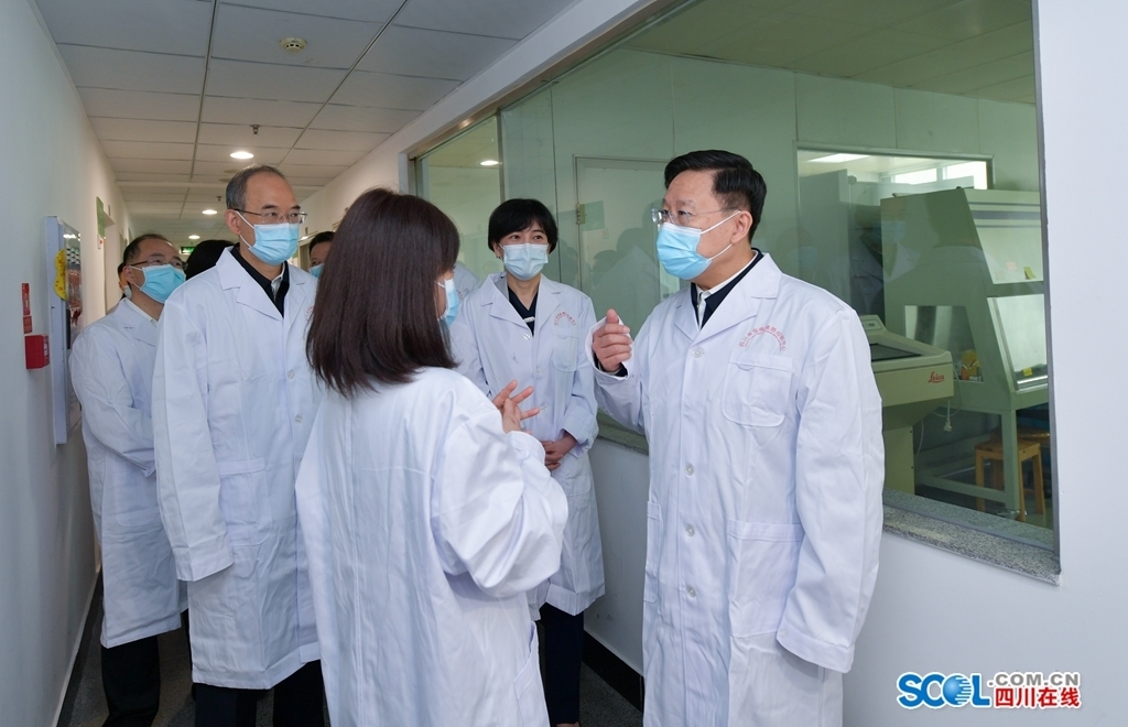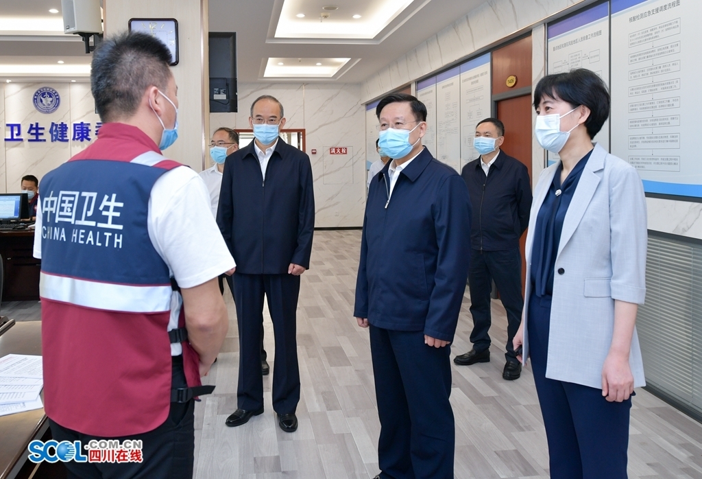 调研中,王晓晖、黄强先后来到省疾控中心病毒实验室、省卫生健康委突发公共卫生事件应急指挥中心,看望慰问工作人员,询问了解新冠病毒标本分型、基因测序及流行病学调查工作进展情况,听取专家研判审核专班、人员排查管理专班、核酸检测调度专班重点工作情况介绍。随后,王晓晖主持召开专题会议,听取全省疫情防控工作情况和成都市、省卫生健康委、教育厅、交通运输厅、商务厅、省大数据中心有关情况汇报。