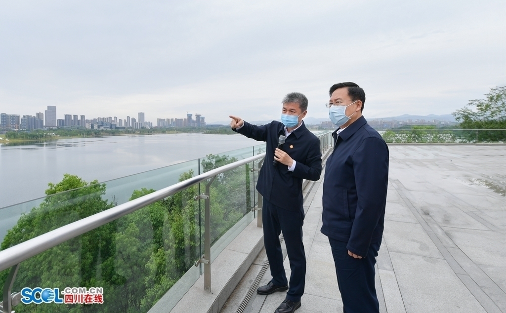 5月9日,省委书记王晓晖到天府新区调研,在天府新区规划厅平台远眺西部(成都)科学城建设实景,了解成都建设践行新发展理念的公园城市示范区情况。