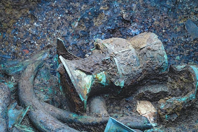 如今,6座新坑中7、8号坑仍在继续发掘,有人趴在操作台上剔着文物上的泥土,有人在电脑前记录着现场信息。坑内,层层叠叠的象牙已经取完,暴露出来的青铜器密密麻麻,视觉效果极为震撼。在下一次成果发布中,预计还将继续有重量级的文物出现。