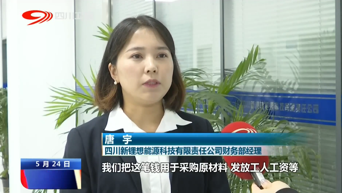 四川新锂想能源科技有限责任公司财务部经理 唐宇:今年4月,我们获得了增值税留抵退税1400余万元,我们把这笔钱用于采购原材料,发放工人工资等,目前我们从事生产的工人就有200多人,其中有20多名是脱贫户和失业再就业人员,没有因疫情冲击,裁掉一名员工。