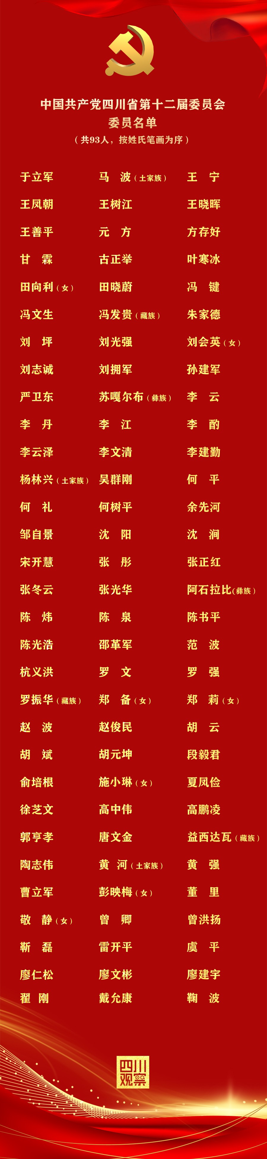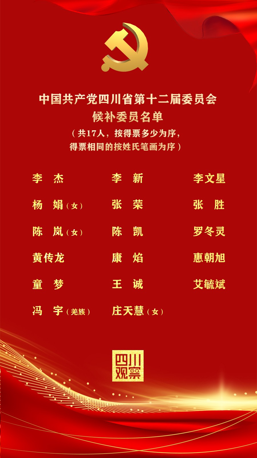 新一届四川省委委员、候补委员名单
