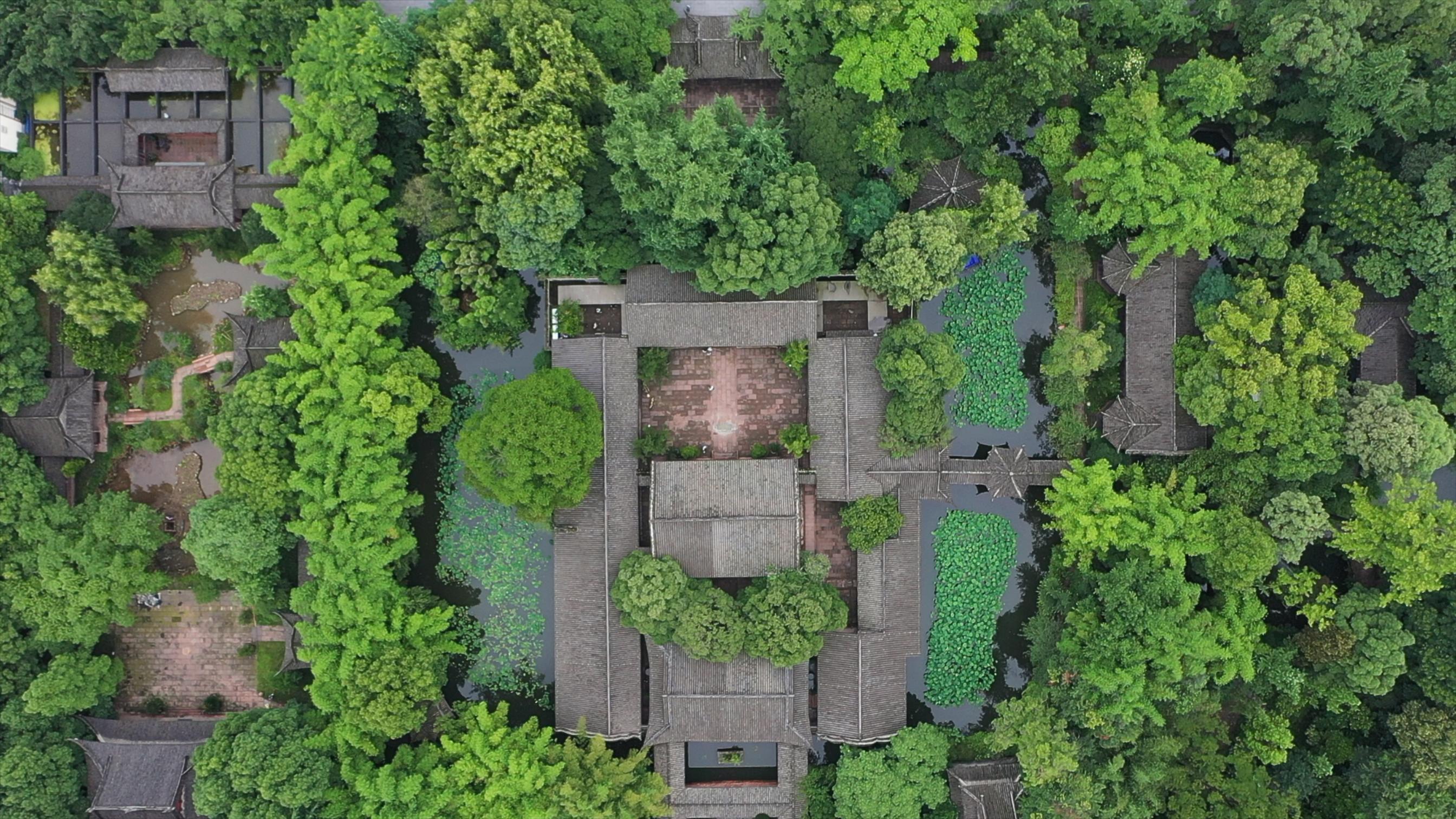 △俯瞰三苏祠,树木葱茏。(总台记者齐涛拍摄)