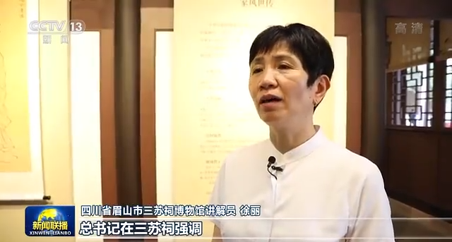 四川省眉山市三苏祠博物馆讲解员 徐丽:苏轼的一家一直秉承着读书正业、孝慈仁爱、非义不取和为官清廉的家教家风。总书记在三苏祠强调,家风家教是一个家庭最宝贵的财富,是留给子孙后代最好的遗产。我们讲好苏东坡的家风家教故事,让优秀的传统文化传承好、发扬好。
