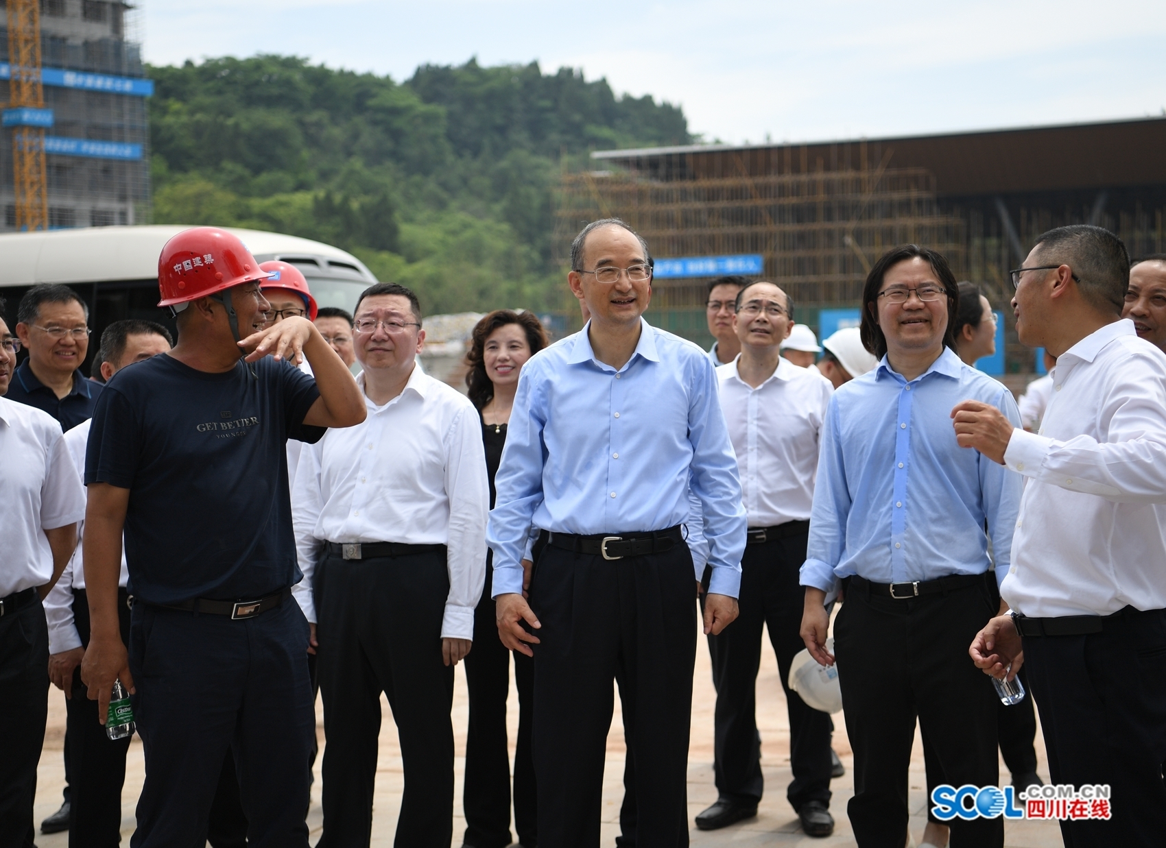 黄强在资阳临空经济区的天府国际艺术城美术学院校区,听取项目建设、开学前筹备工作等情况介绍,深入美术馆、礼堂、综合楼等施工现场。