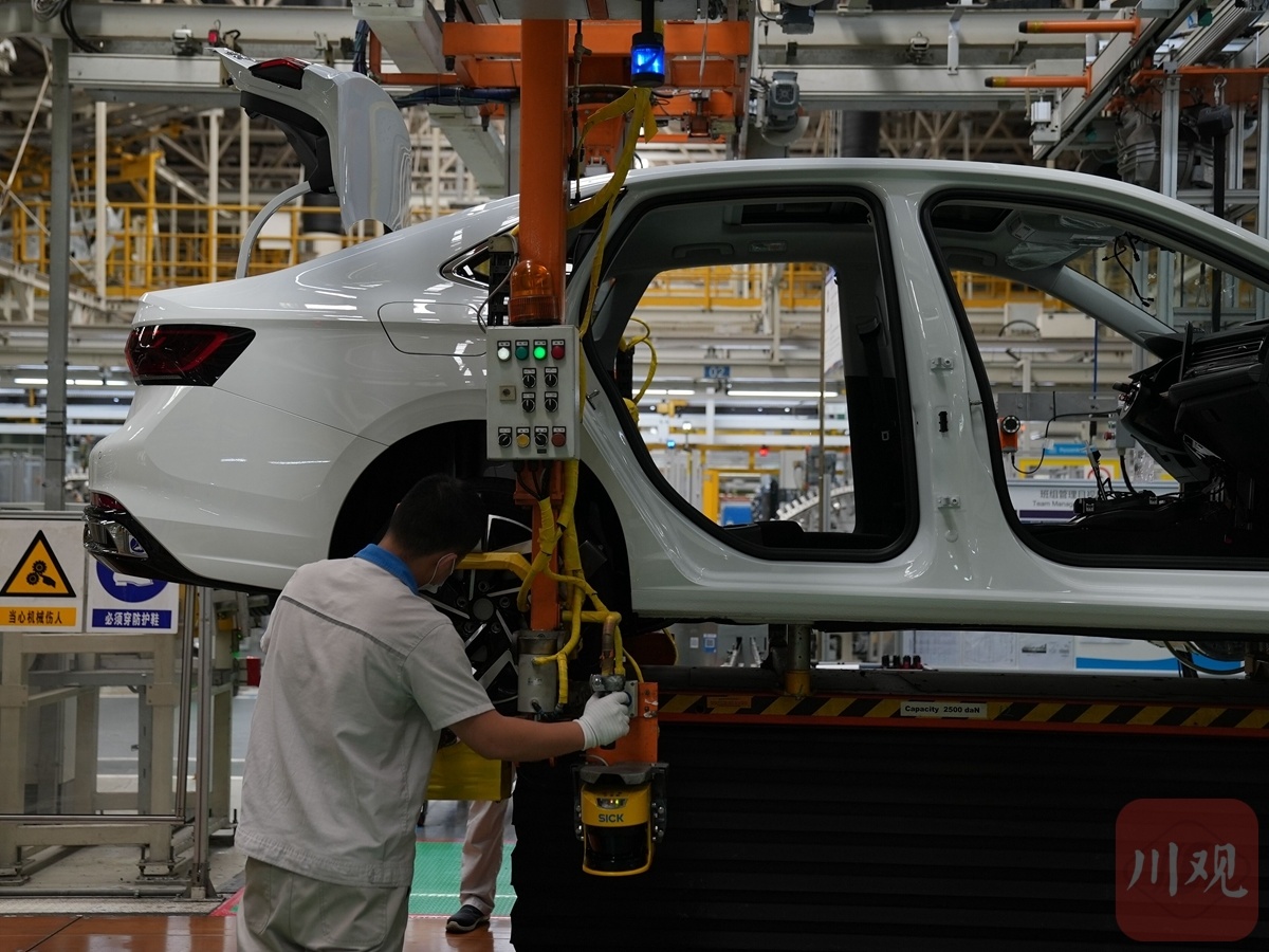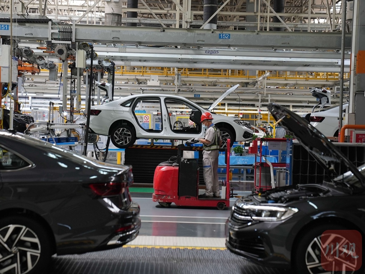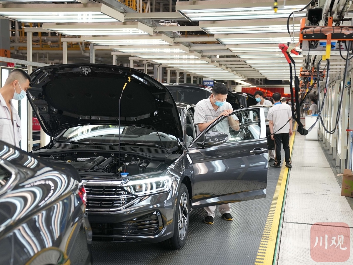 6月20日,成都经开区一汽-大众成都分公司总装车间,生产线全部开启,机械臂忙碌挥舞,运送零部件的AGV小车来往穿梭。一辆辆即将在月底投入市场的新车排着队驶下生产线。