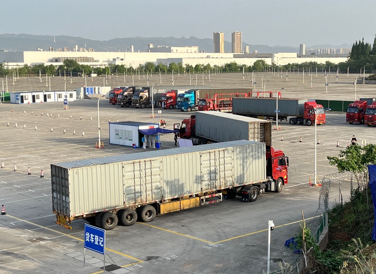 6月20日中午,四川日报全媒体调研组记者来到这个离一汽-大众成都分公司仅5分钟车程的中转站,刚好遇上三辆整车运输车排队准备进入中转站。门口的保安给车辆拍照、登记后放行,“今天要来18辆车。涉疫地区货运车辆在出发时就要报备,我们早就心中有数。”中转站现场负责人曾铁军说。