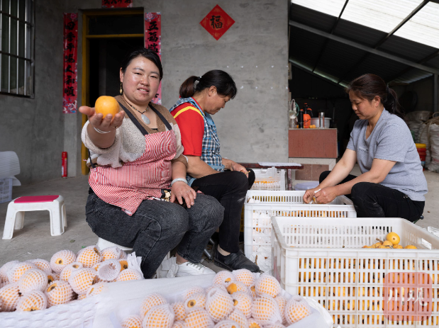 村民们在五龙乡的冷山合作社包装枇杷。得益于独特的峡谷小气候,五龙乡极宜种植大个头的晚熟枇杷,村民展示当地特产的大五星枇杷。 川观新闻记者 郝飞/摄