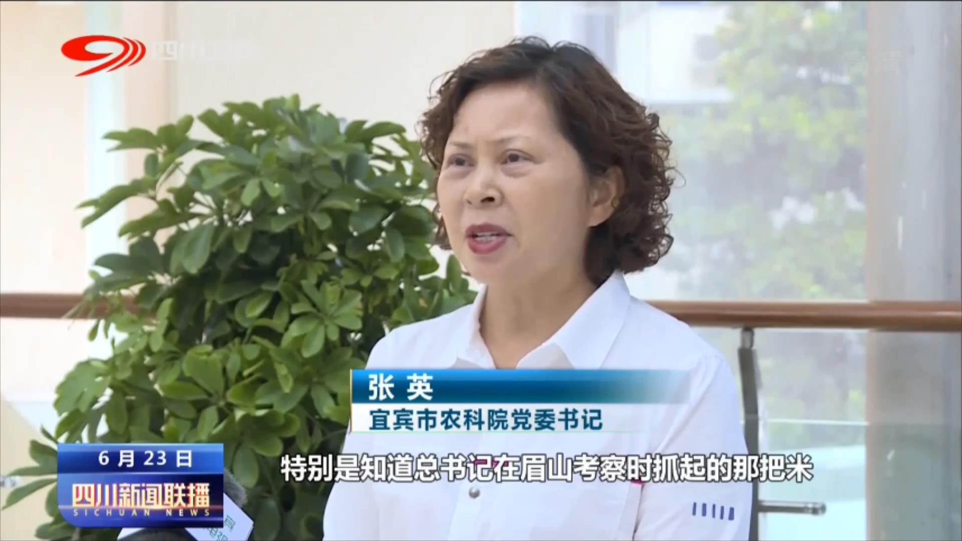 宜宾市农科院党委书记 张英:特别是知道总书记在眉山考察时抓起的那把米,是由宜宾市农科院和四川农业大学联合选育的水稻品种“宜香优2115”时,我们感到无比自豪,也更加坚定了我们“俯身大地以创新引领三农、躬耕田野用科技振兴乡村”的信念和信心。
