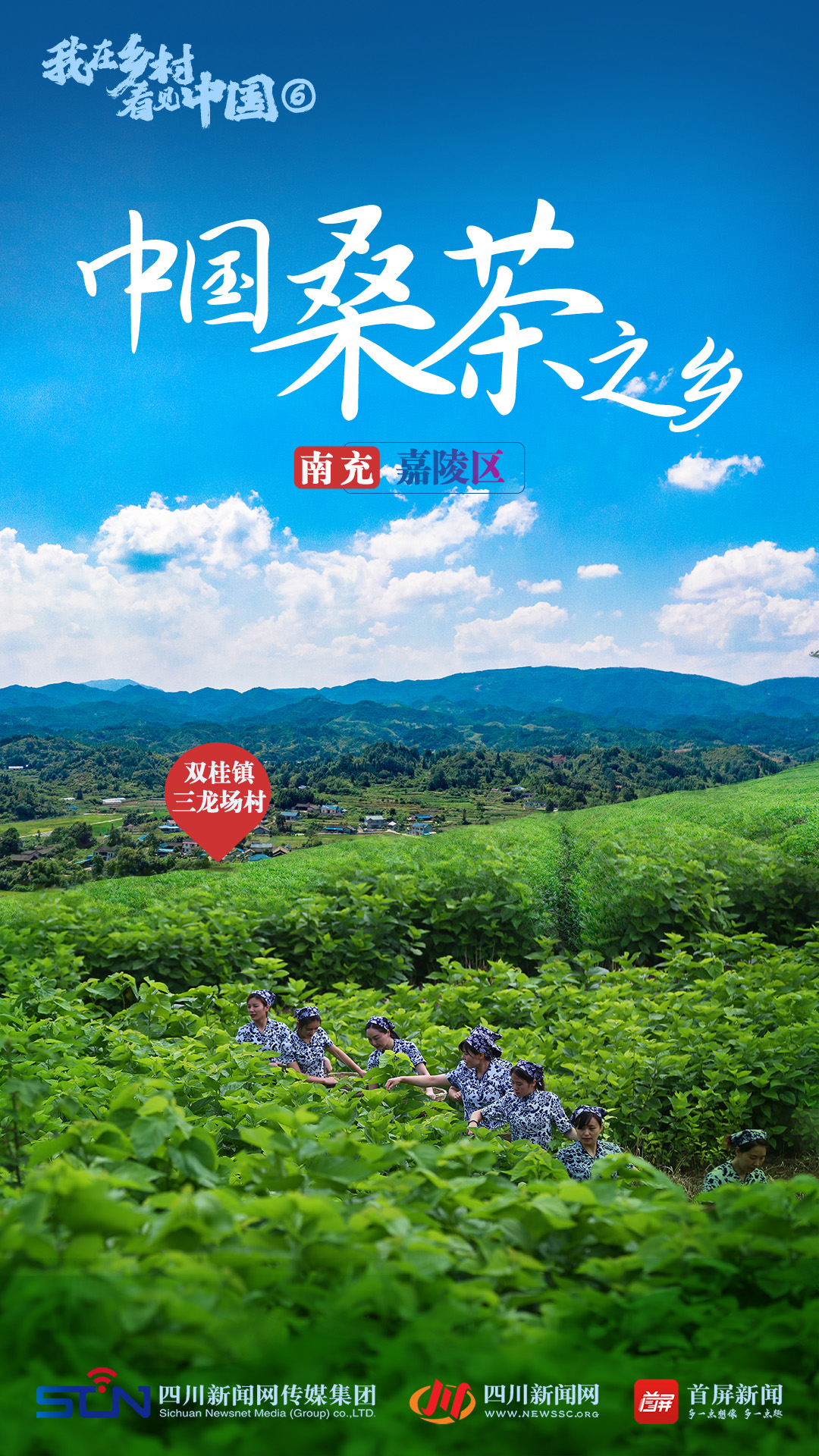 在嘉陵区双桂镇三龙场村,一望无际的桑茶园尽收眼底,微风拂过,数万亩连绵不绝的桑树染绿了群山。