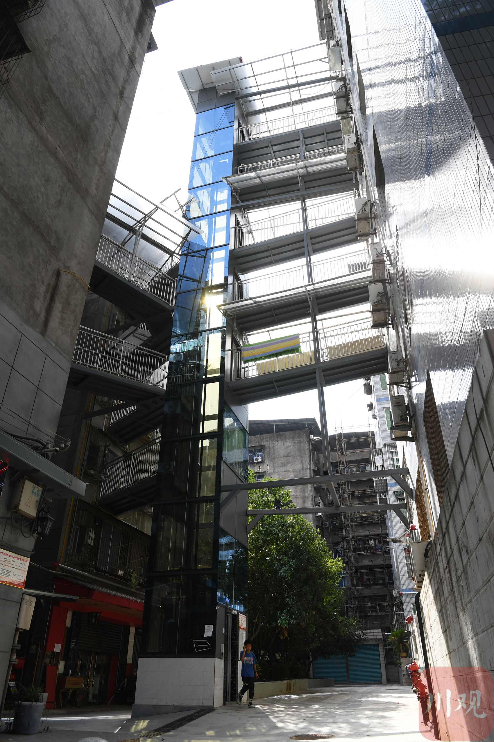 通江县壁州街道牌坊街社区为老旧小区安装电梯。