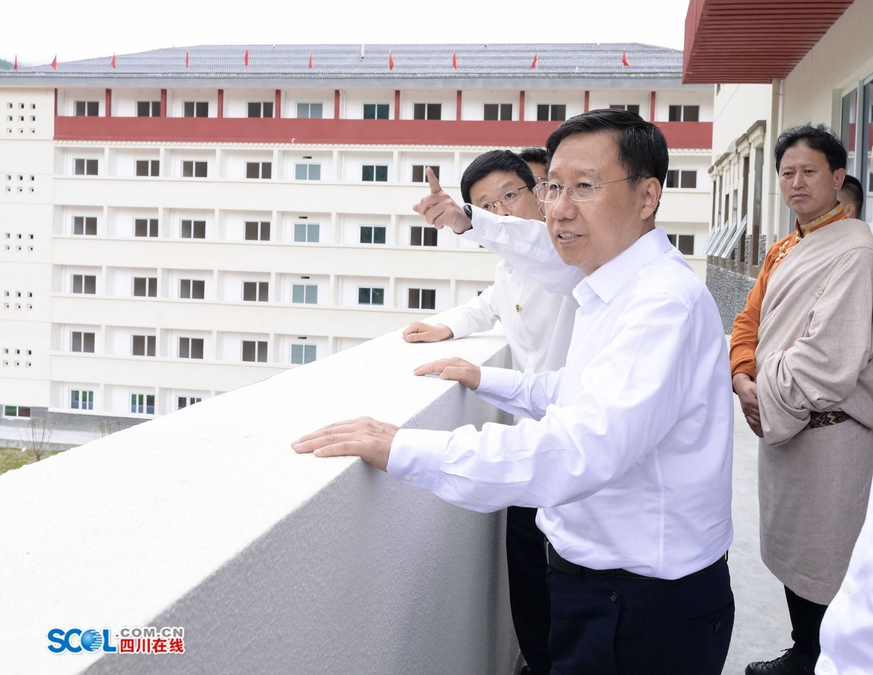 7月12日,省委书记王晓晖到东西部协作对口支援建设重点项目康定市第二中学调研,察看教学楼、体育场、学生宿舍等设施建设布局。
