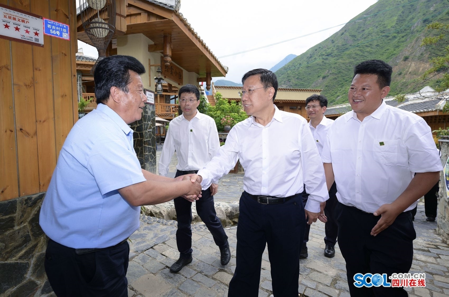7月12日,省委书记王晓晖到康定市姑咱镇若吉村调研,走进民宿院子与经营业主亲切交流,询问经营状况、运行模式、群众参与情况,详细了解当地推动巩固拓展脱贫攻坚成果同乡村振兴有效衔接情况。