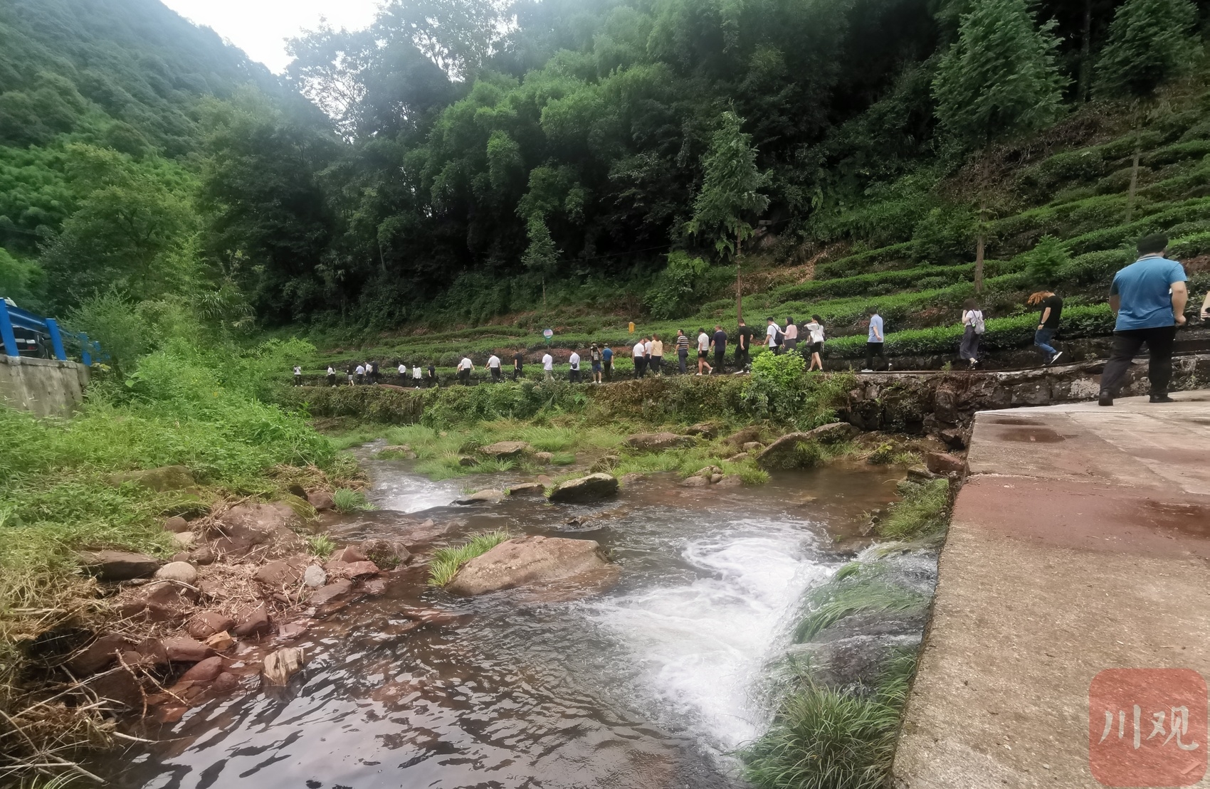 参会人员在雅安市后盐村参观基层河湖治理。