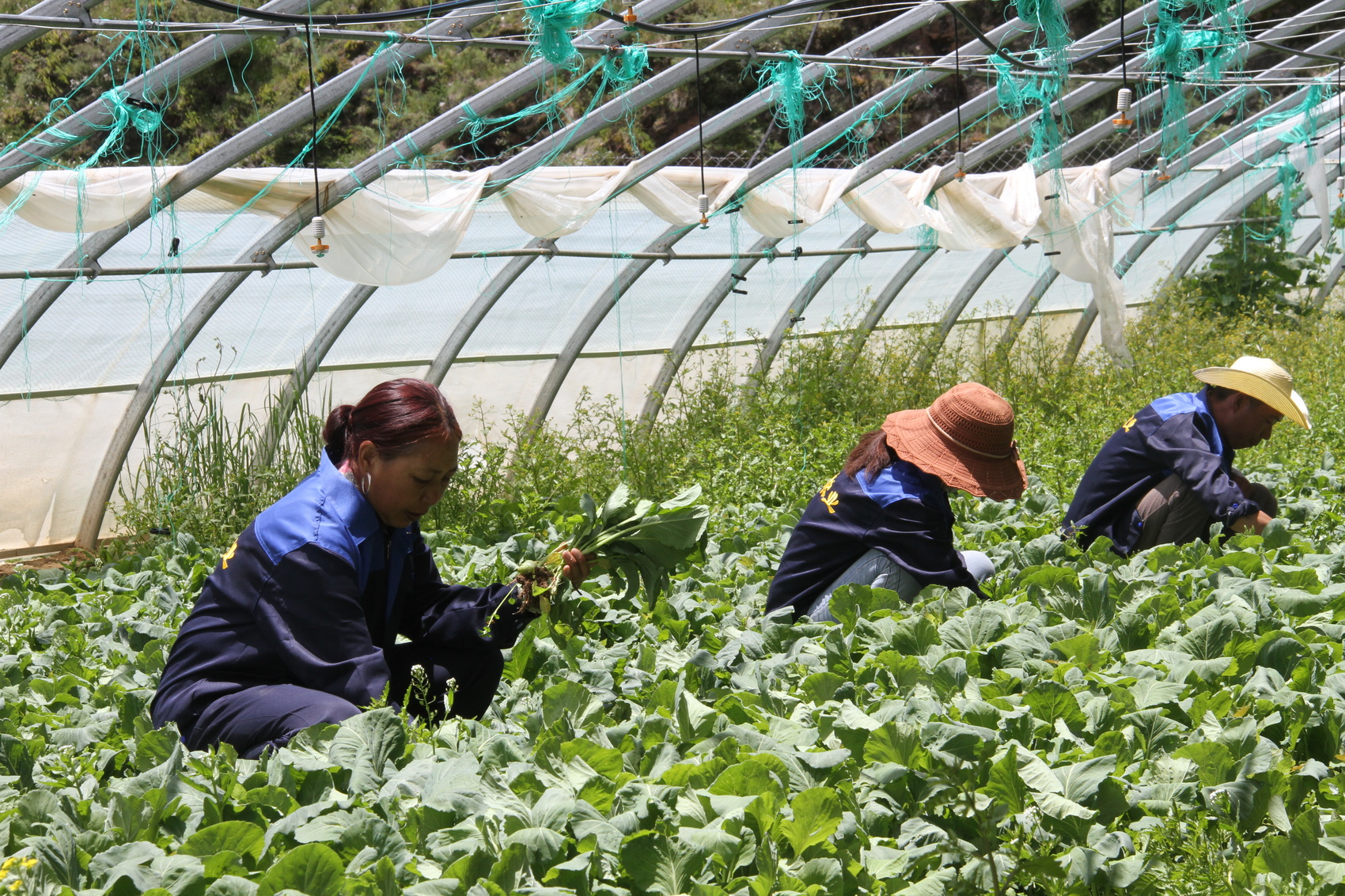 在基地,种植了大批高原适生品种蔬菜,如莲花白、莴笋、三月瓜、大白菜、大青椒、小葱、芹菜等。“首批三个大棚的3亩小白菜已上市,产量1万斤,批发价每斤2.2元。因是本地产的新鲜蔬菜,一到菜市场就被抢购一空。按目前趋势,基地今年估计产值将达380万元。”代勇说。