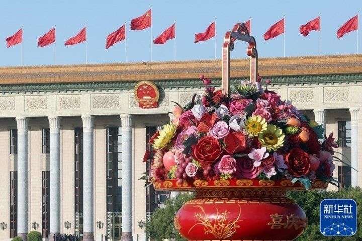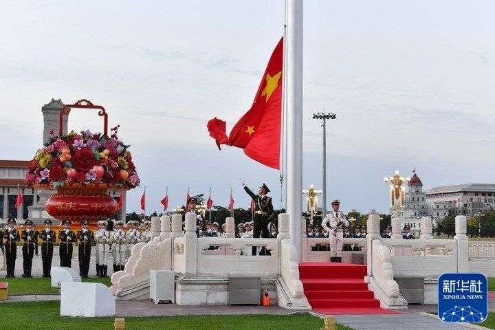 10月16日清晨,北京天安门广场举行升国旗仪式。10月16日,中国共产党第二十次全国代表大会即将在北京人民大会堂开幕。新华社发(武炎龙 摄)