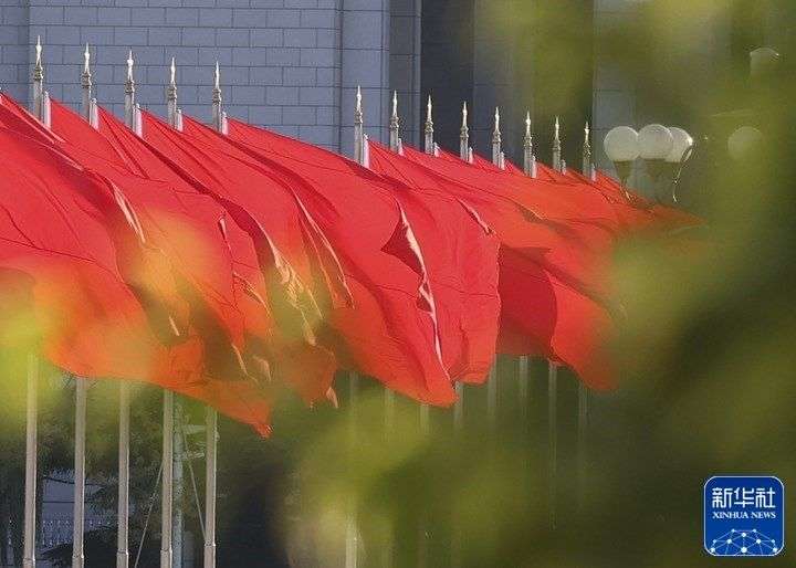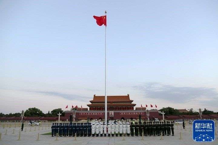 10月16日清晨,北京天安门广场举行升国旗仪式。10月16日,中国共产党第二十次全国代表大会即将在北京人民大会堂开幕。新华社发(魏威 摄)