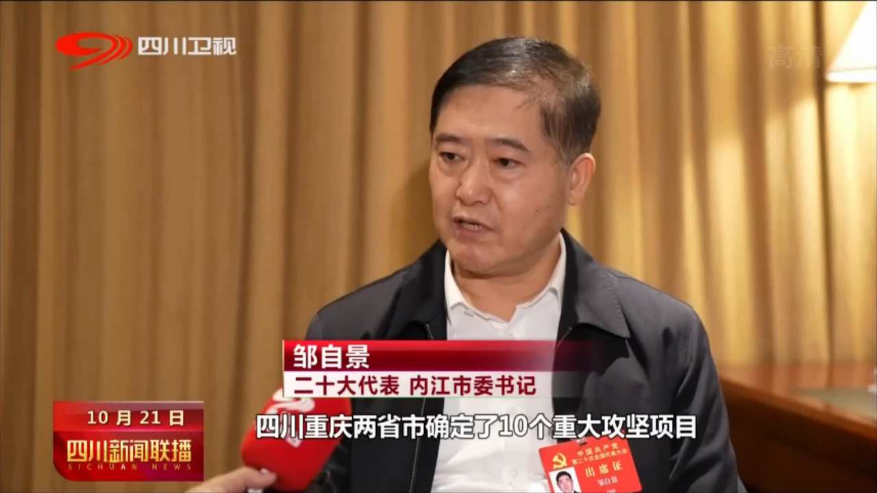 二十大代表 内江市委书记 邹自景:四川重庆两省市确定了10个重大攻坚项目,内江市也确定了30个重点建设项目,那么我们要抓好“10+30”重大项目建设,同时我们要更好地融入川南渝西融合发展试验区,更好地推进内江自贡同城化发展。