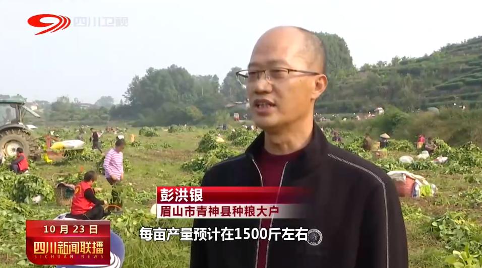 眉山市青神县种粮大户 彭洪银:每亩产量预计在1500斤左右,价格(每斤)2.5元,预计能收入200多万元,今年是一个好收成。