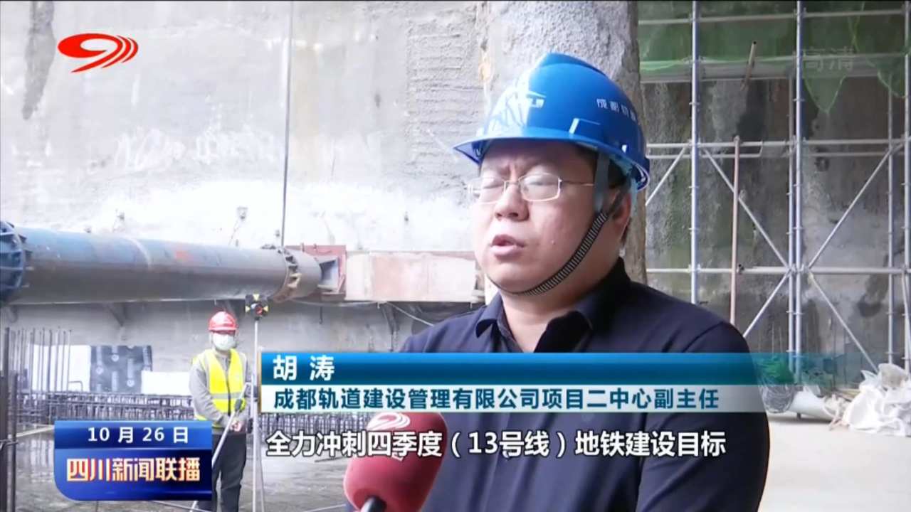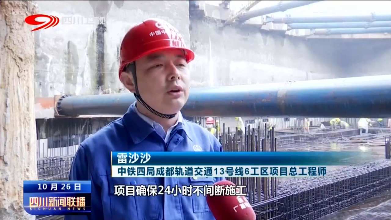 中铁四局成都轨道交通13号线6工区项目总工程师 雷沙沙:在接下来冲刺四季度的关键时刻,项目将确保24小时不间断施工,力争(今年)11月底完成车站封顶,为四川师大站到娇子立交站区间盾构始发提供条件。
