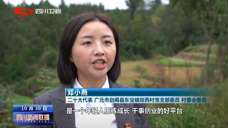 二十大代表、广元市剑阁县东宝镇双西村党支部委员 村委会委员 邓小燕:农村的舞台很大,是一个年轻人历练成长、干事创业的好平台。我将继续扩大东宝贡米种植面积,做大做强订单农业,以一粒米撬动大产业,带动更多群众种粮、种好粮,为端牢中国人自己的饭碗出一份力。