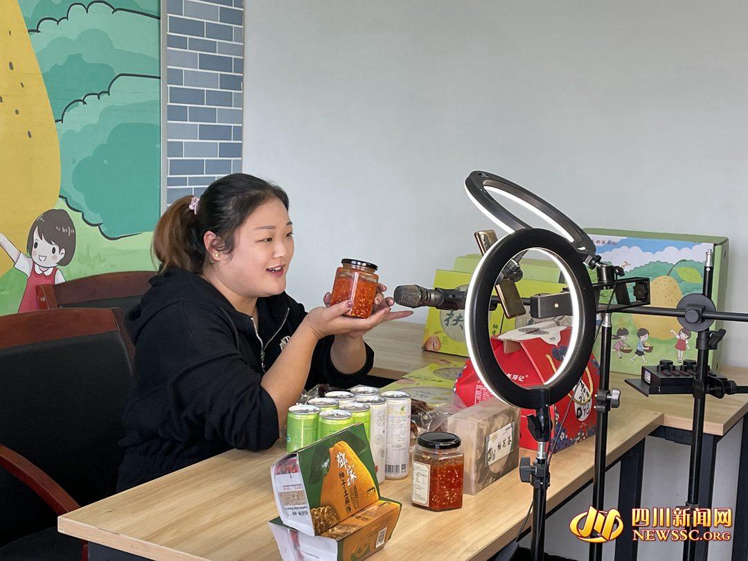 “我们现在主要是通过电商平台销售农副产品,产品主要有我们的龙安柚、剁椒酱、香肠、腊肉等,全平台线上线下单月最高可达80万销量。”近日,在广安区龙安乡革新村活动室里,村里电商管理杨红梅一边在电脑前查看本月的产品线上销售情况,一边向记者介绍。前不久,在他们的线上直播间里,村里的剁椒酱取得了12小时5000单6万多元的好成绩。