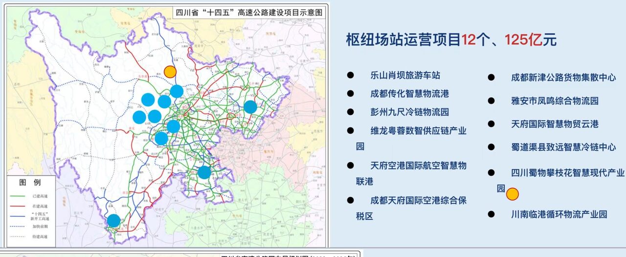 在今天(2月20日)成都举行的四川省高速公路项目招商推介会上,36个高速公路项目和6个普通公路项目、5个水运项目、12个枢纽场站运营项目集中亮相招商。其中一大批“省际大通道项目”“高原高速”“文旅融合动脉”展现了一张“四向八廊”“未来可期”的公路路网。