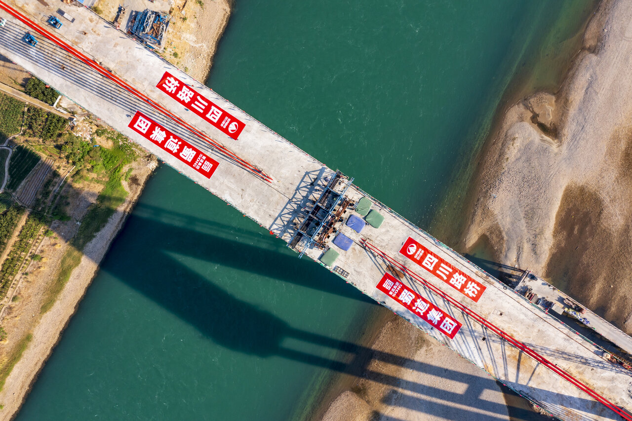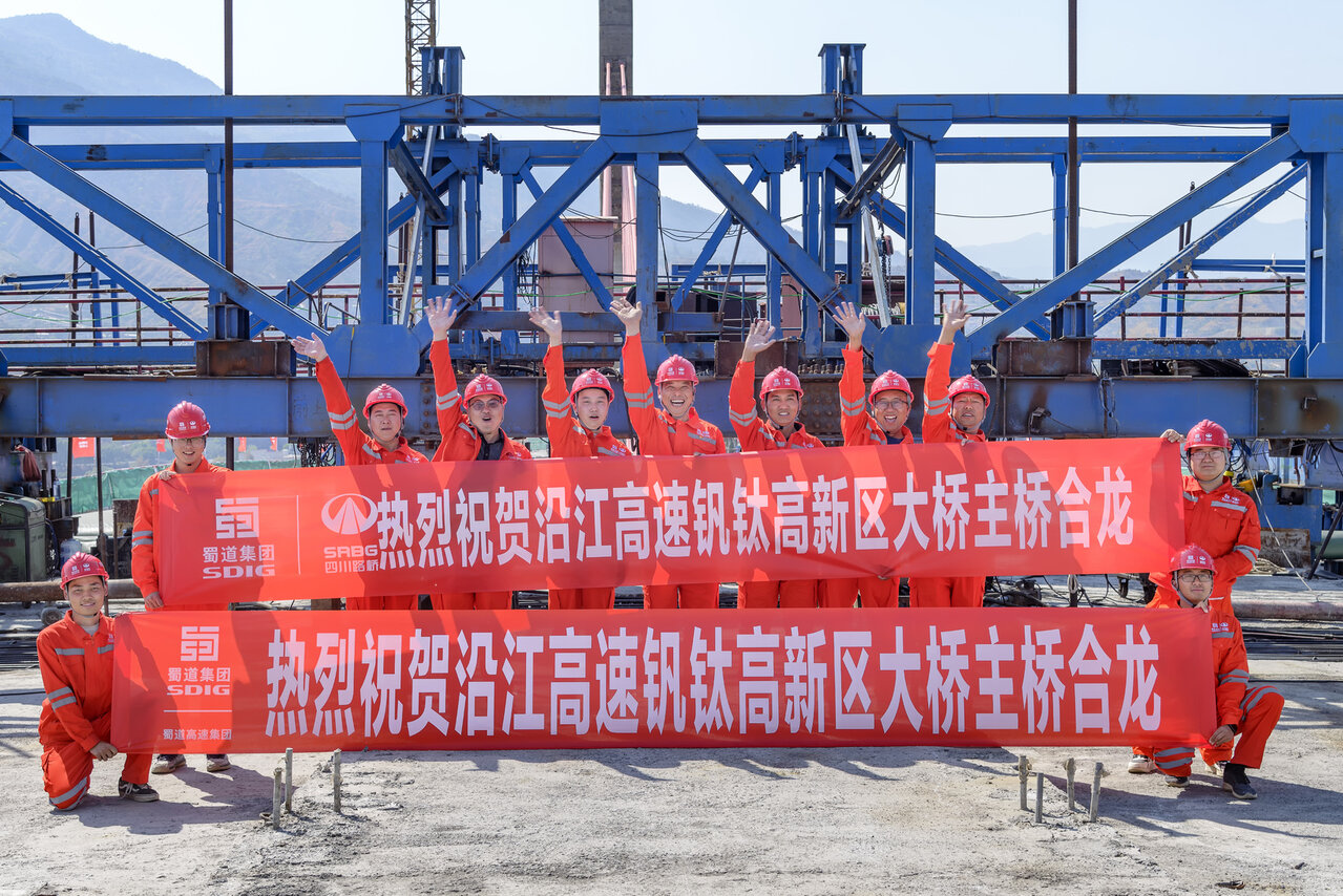 沿江高速钒钛高新区大桥主桥合龙现场。四川路桥集团大桥工程分公司供图