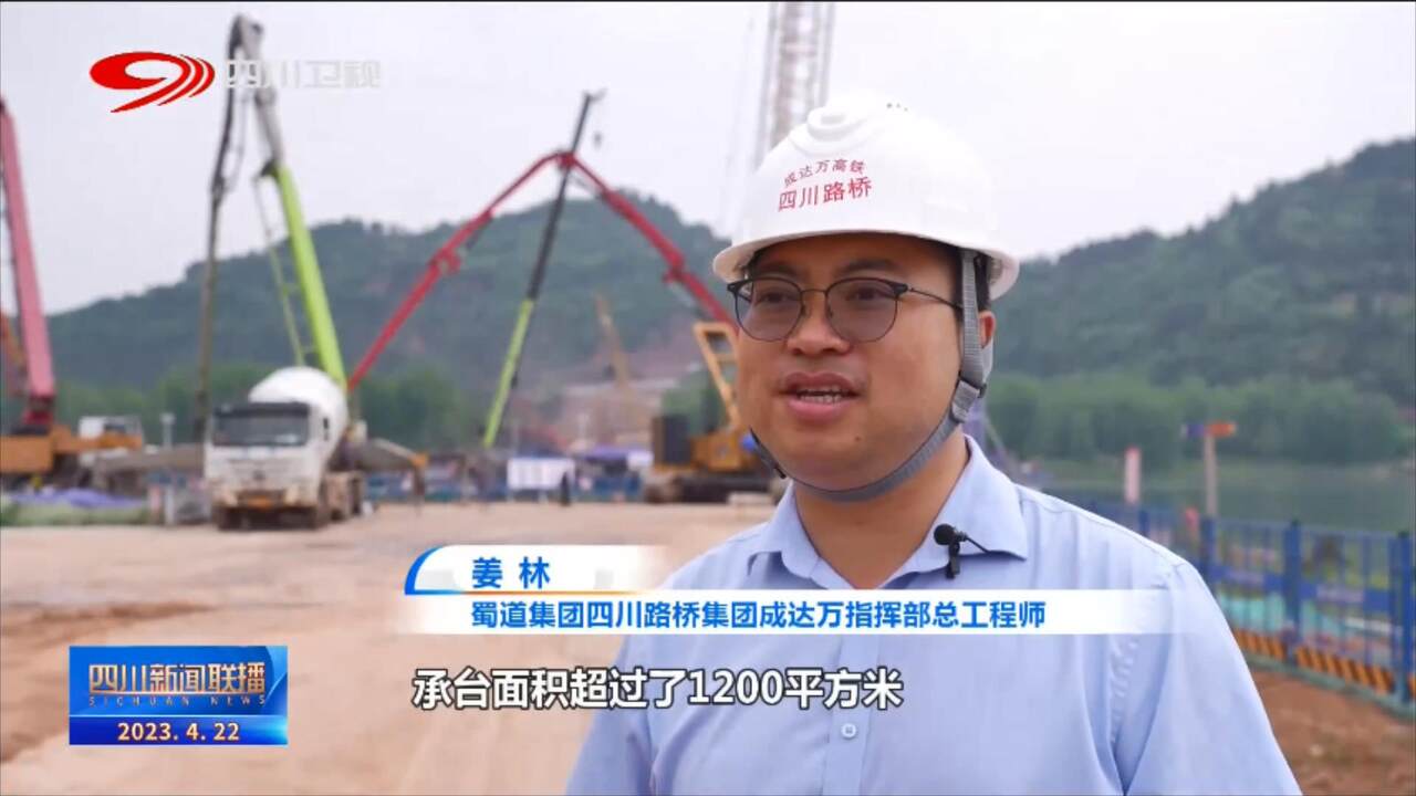 蜀道集团四川路桥集团成达万指挥部总工程师 姜林:承台位于嘉陵江河道内,完成浇筑后,意味着水下施工的风险基本消除。承台面积超过了1200平方米,相当于三个篮球场,浇筑方量达到了6258.8立方米,属于超大体积混凝土施工。浇筑完成后,我们将进行塔座施工,计划在五月中旬施工至江面以上。