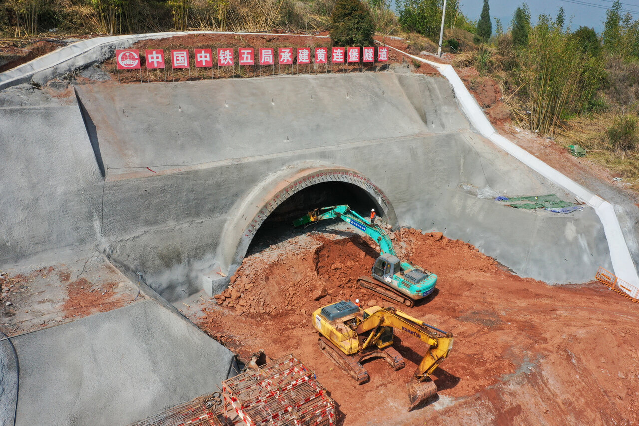 3月30日,由中铁二院设计、中铁五局承建的成渝地区双城经济圈建设重点工程成渝中线高铁首座隧道——黄连堡隧道顺利进洞开始施工,这标志着成渝中线高铁全线建设进入快车道。新华社记者唐奕 摄