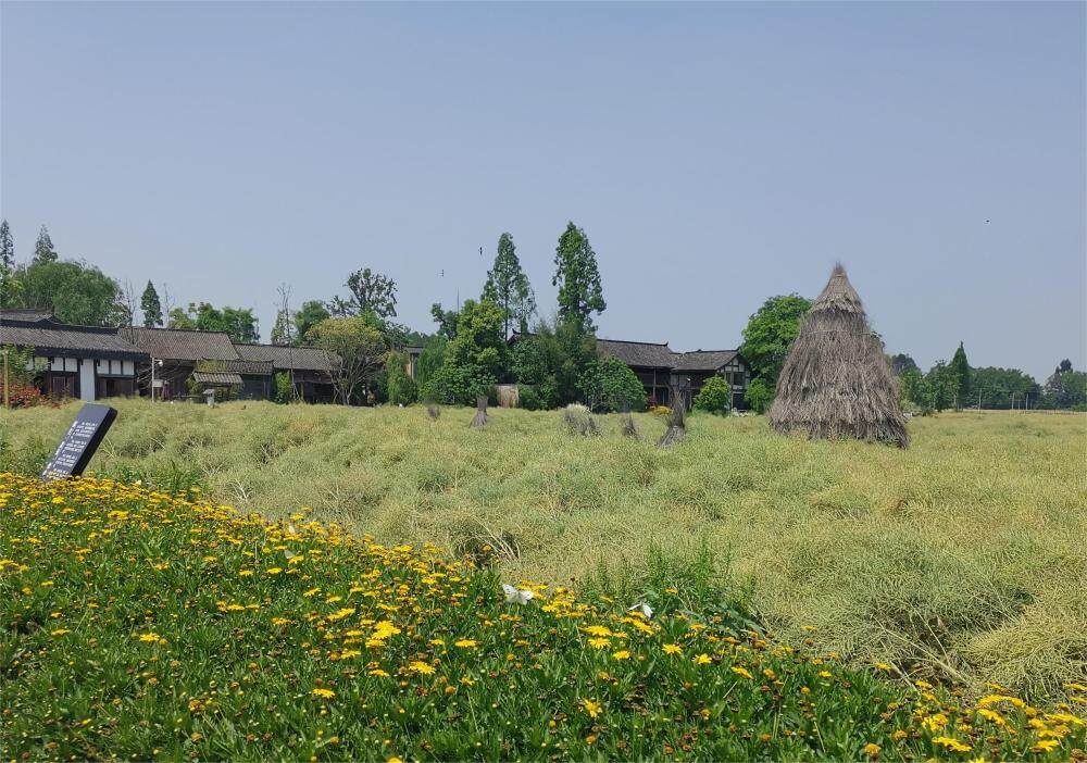 走进民宿院落,“川西坝子”的建筑风格古色古香,精心装点的景观盆栽错落有致。走出后院,豁然开朗,不少游客在麦田、小溪边品茗闲聊。