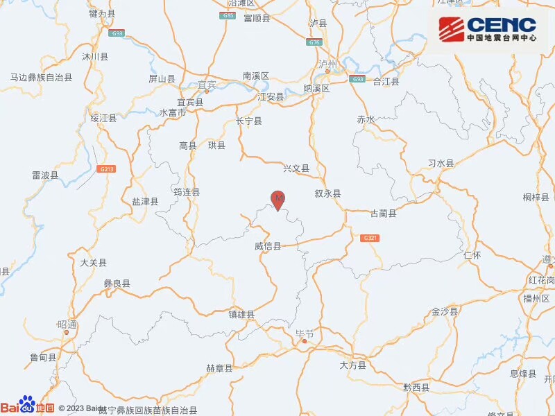 中国地震台网正式测定:05月05日20时33分在四川宜宾市兴文县(北纬28.08度,东经105.12度)发生4.3级地震,震源深度8千米。
