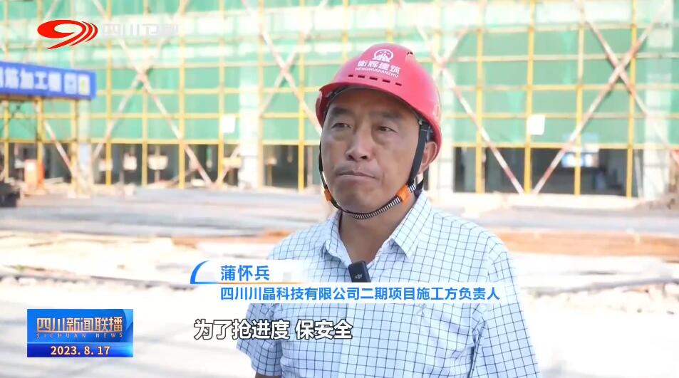 四川川晶科技有限公司二期项目施工方负责人 蒲怀兵:为了抢进度、保安全,我们制定了高温施工计划,把白天的工作量向夜间转移,力争8月底完成主体框架结构工程,进入二次结构施工阶段。